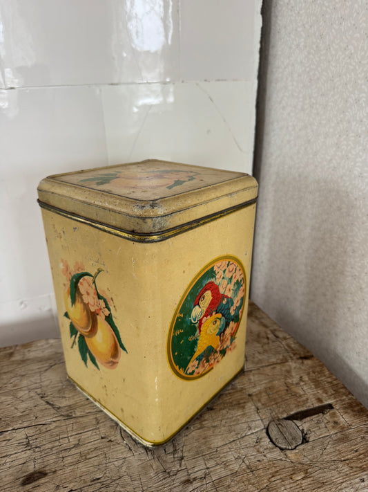 Plåtburk - papegoja och persika
