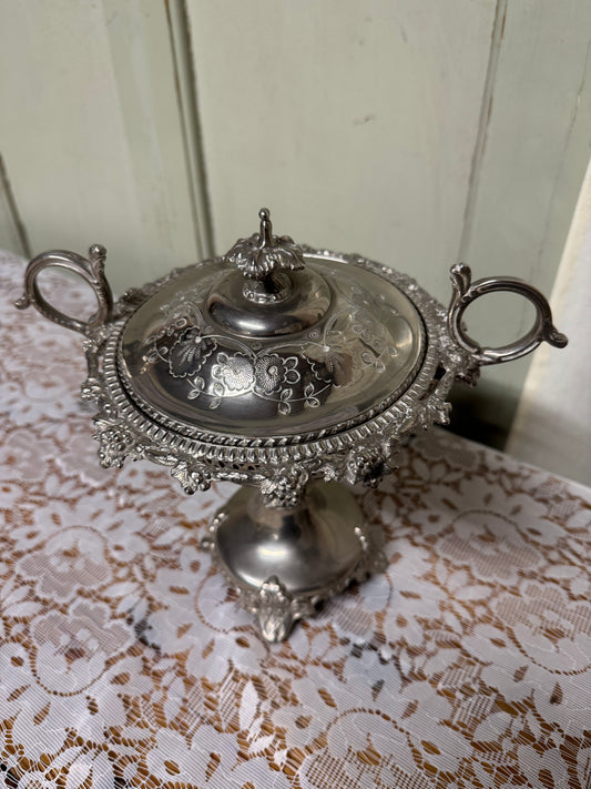 Bonbonjär med glasinsats vitmetall och nysilver, 1900-talets mitt