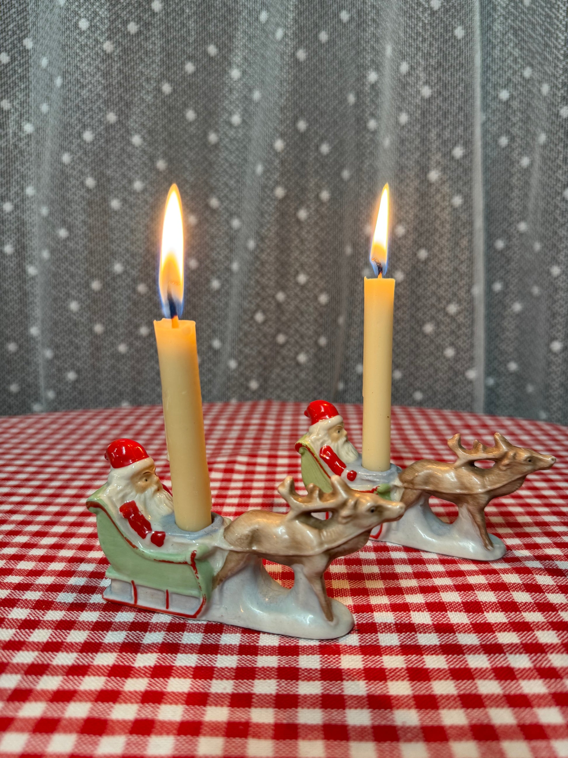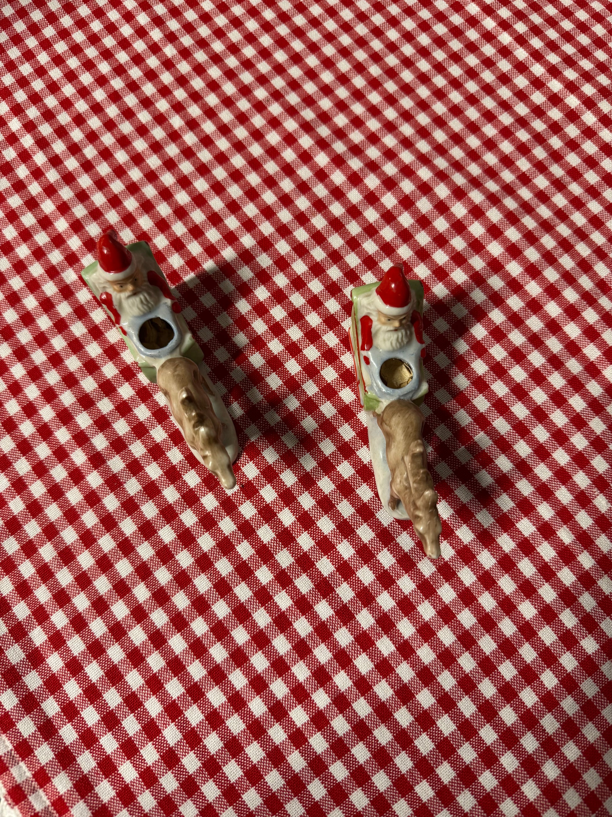 OM: 2 st tomtar med släde och ren i porslin för julgransljus
