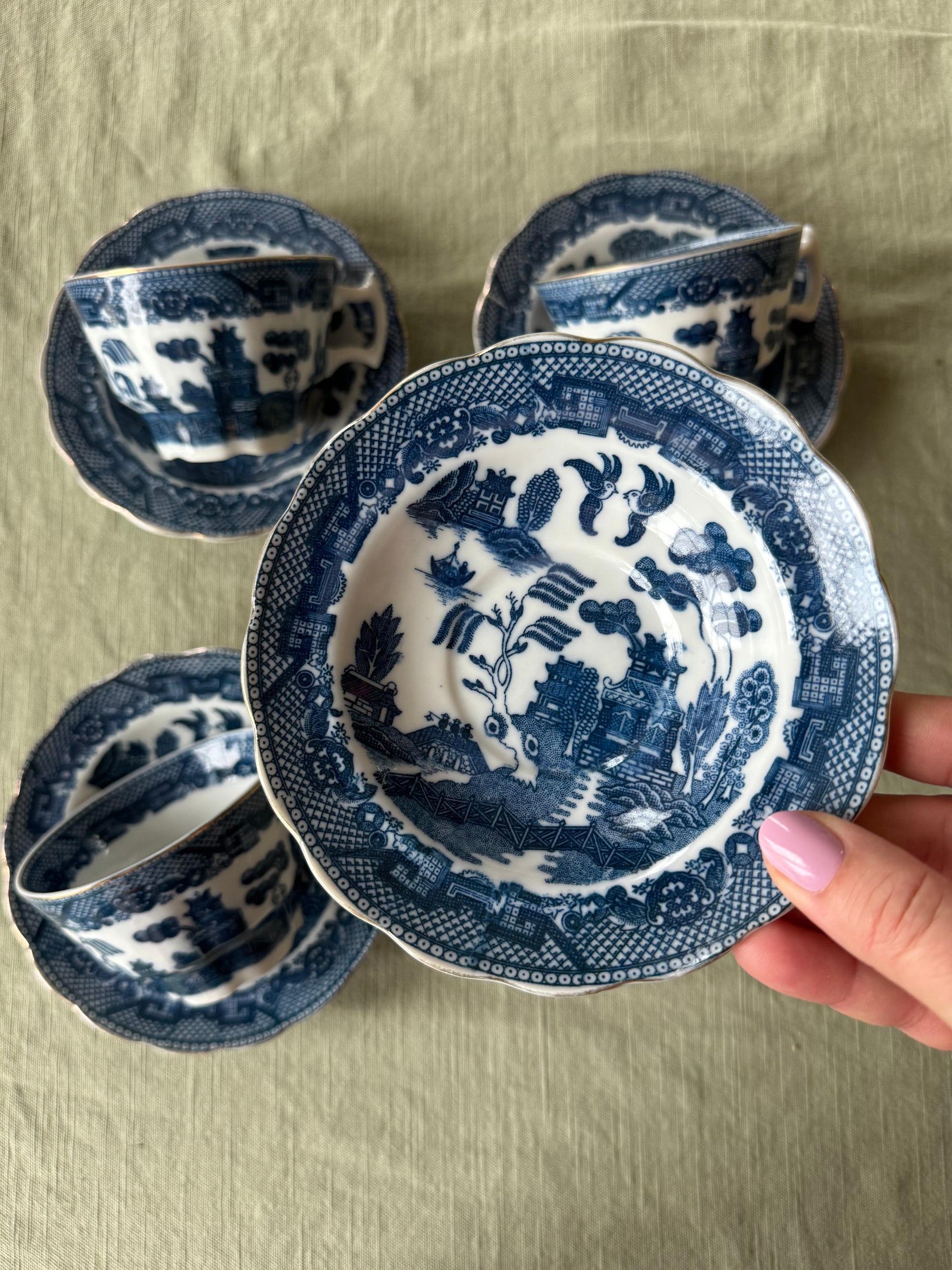 OM:4st kaffekoppar med fat i Blue Willow-mönster. Toppskick!