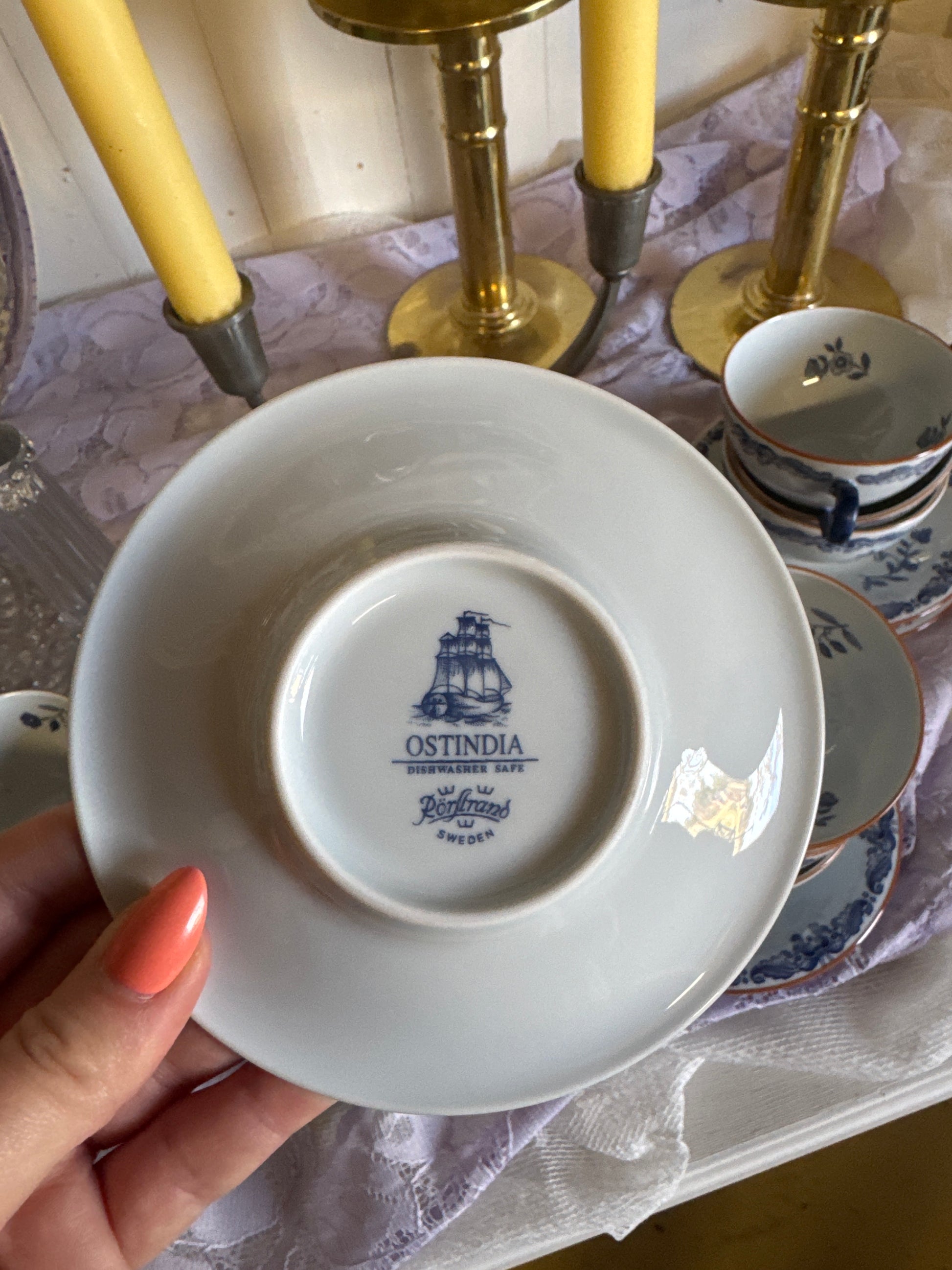 OM:8st kaffekoppar med fat, Ostindia Rörstrand. Toppskick!