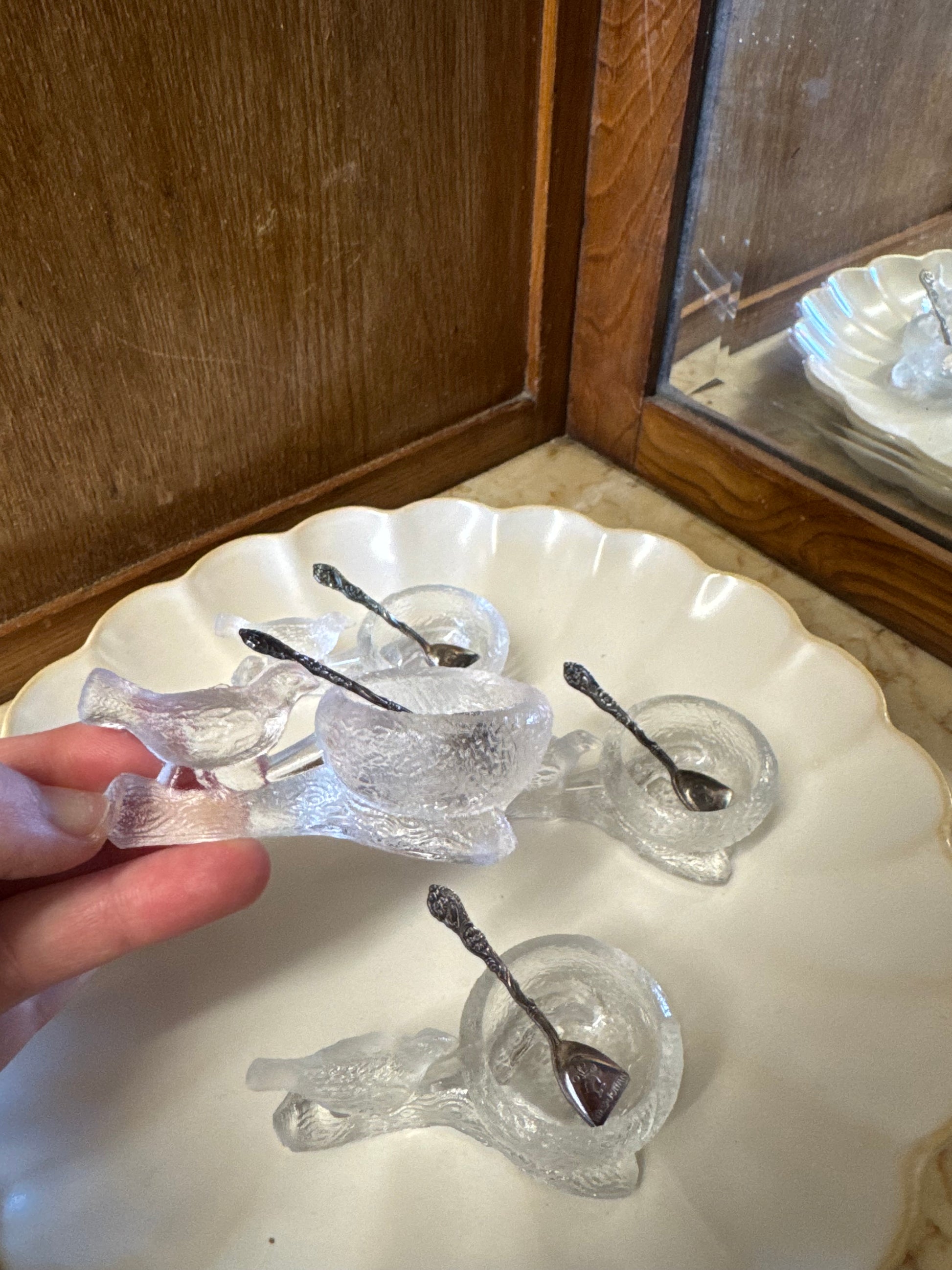 OM:Äggkoppar / saltkar fågel - Lindshammar, 4st med små skedar till varje.