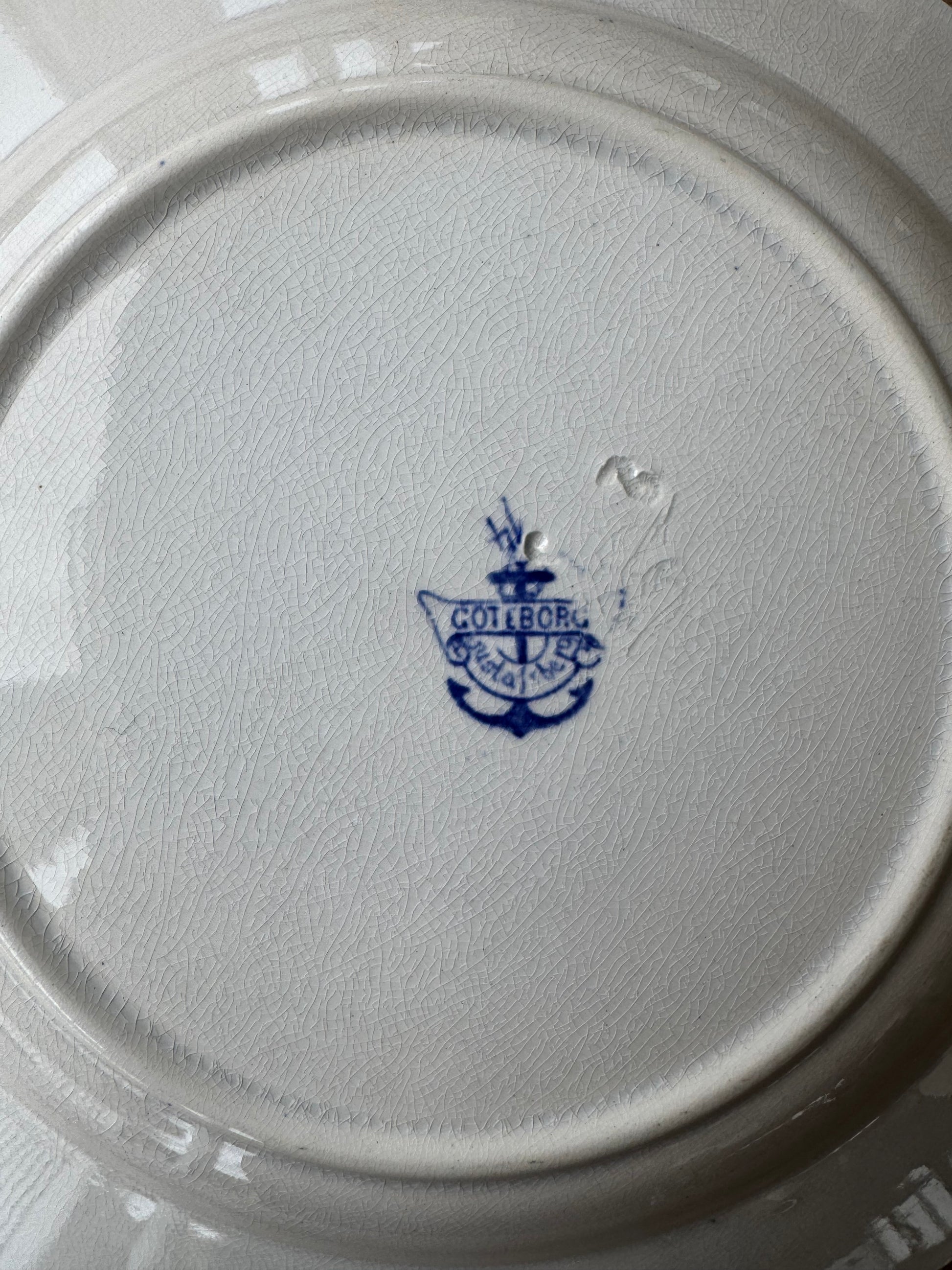 OM:Blåvit mattallrik GÖTEBORG Gustafsberg