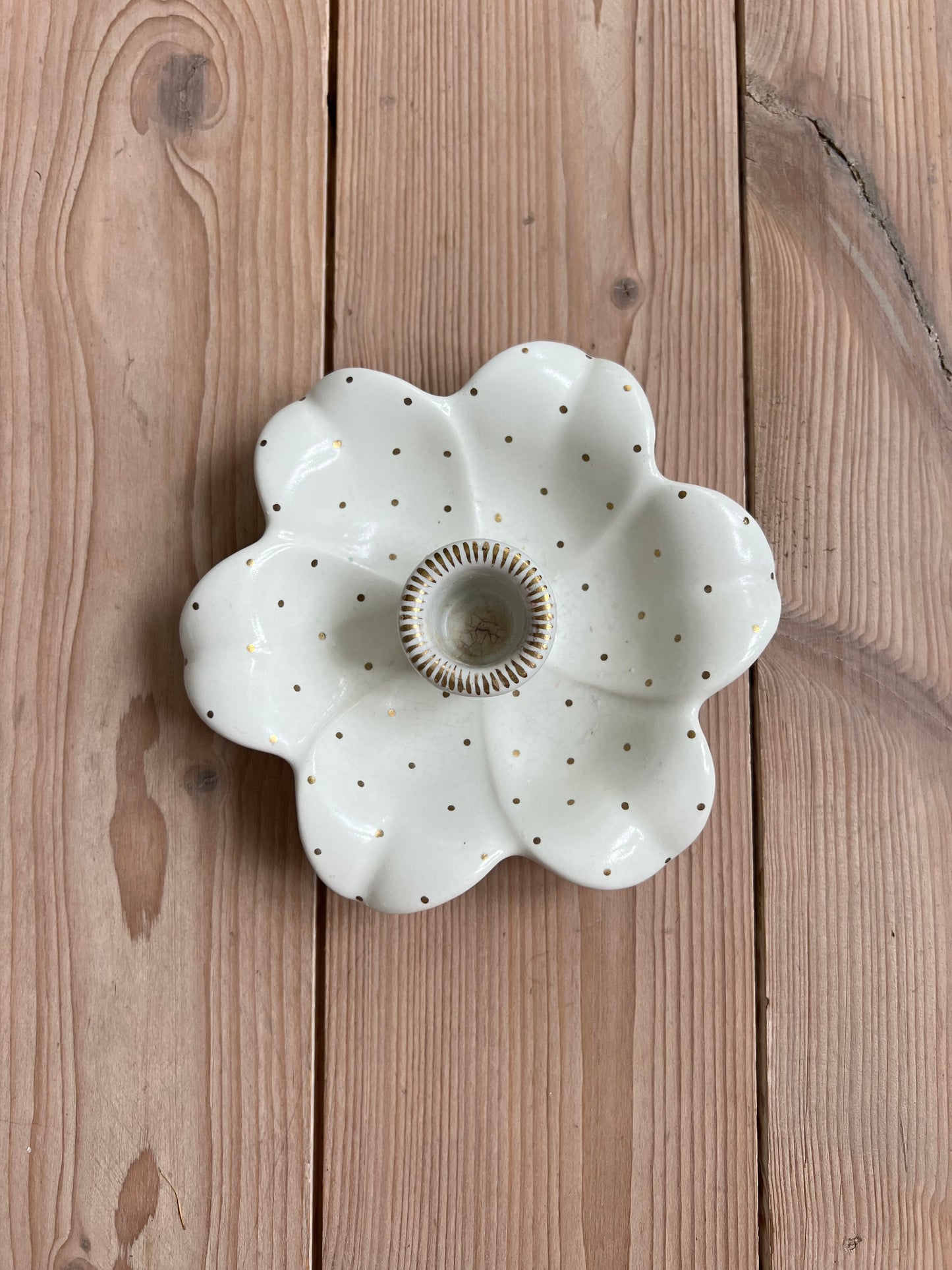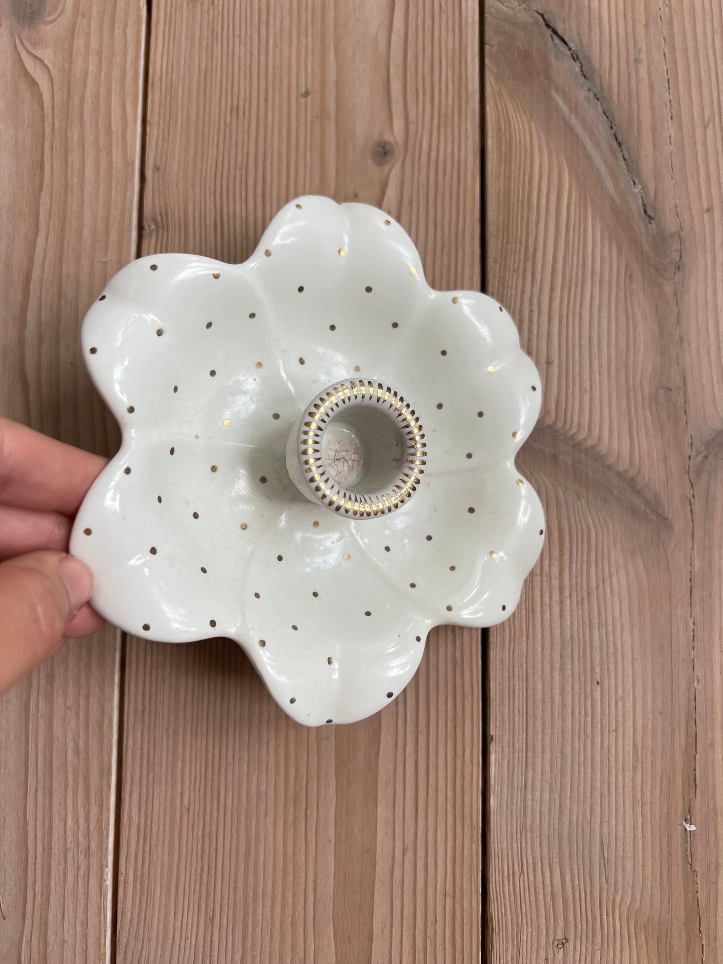 OM: Finaste ljusstaken med guldprickar i form av en blomma.