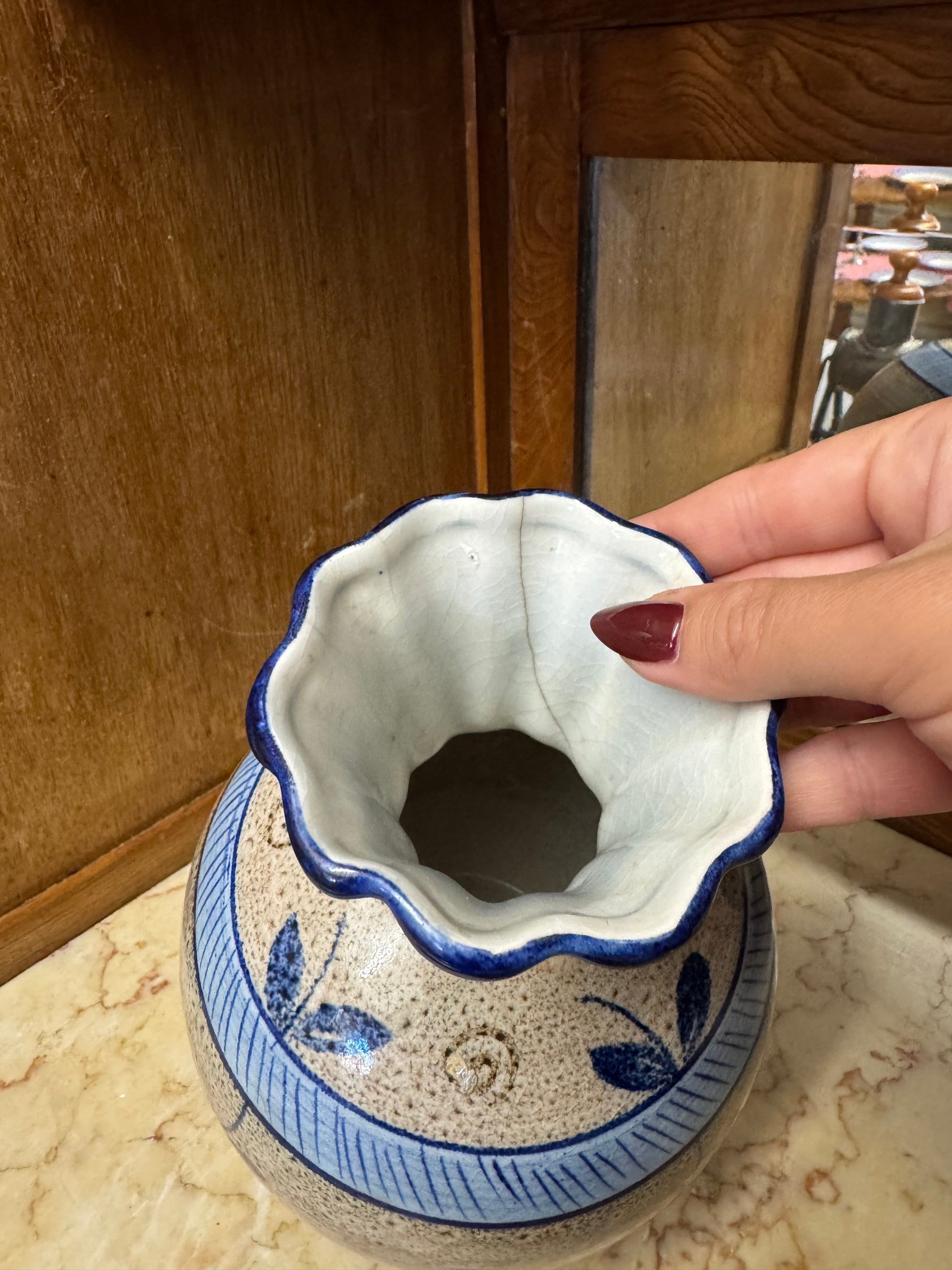 SKICK: Fint begagnat skick. En spricka upptill invändigt som inte går igenom eller läcker. Med blommor i syns inte detta.