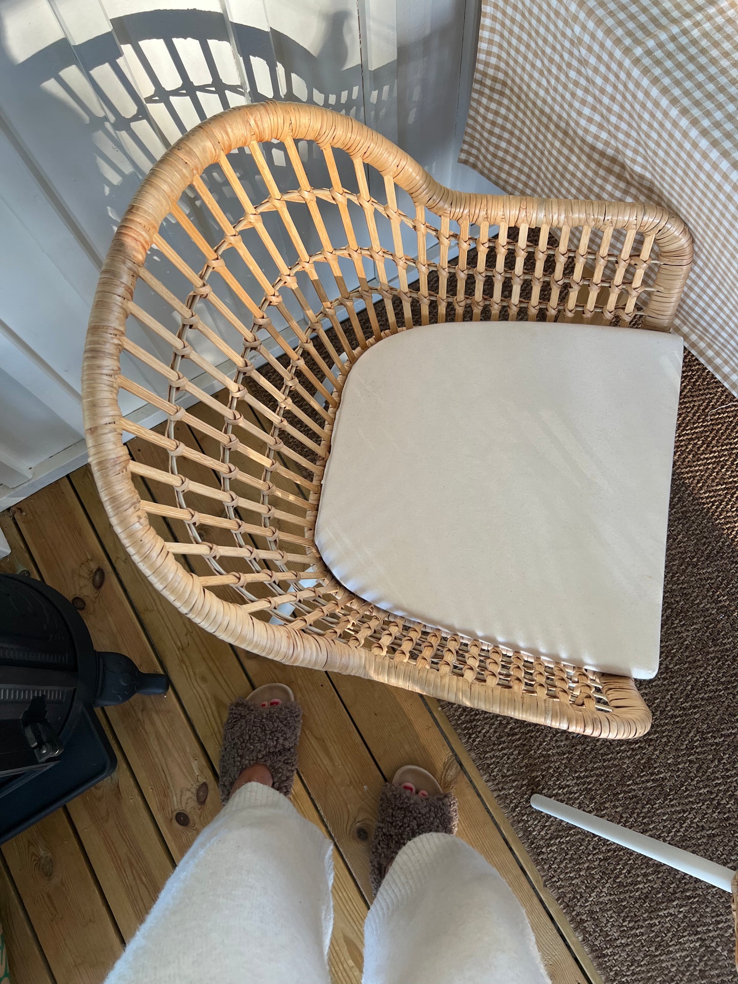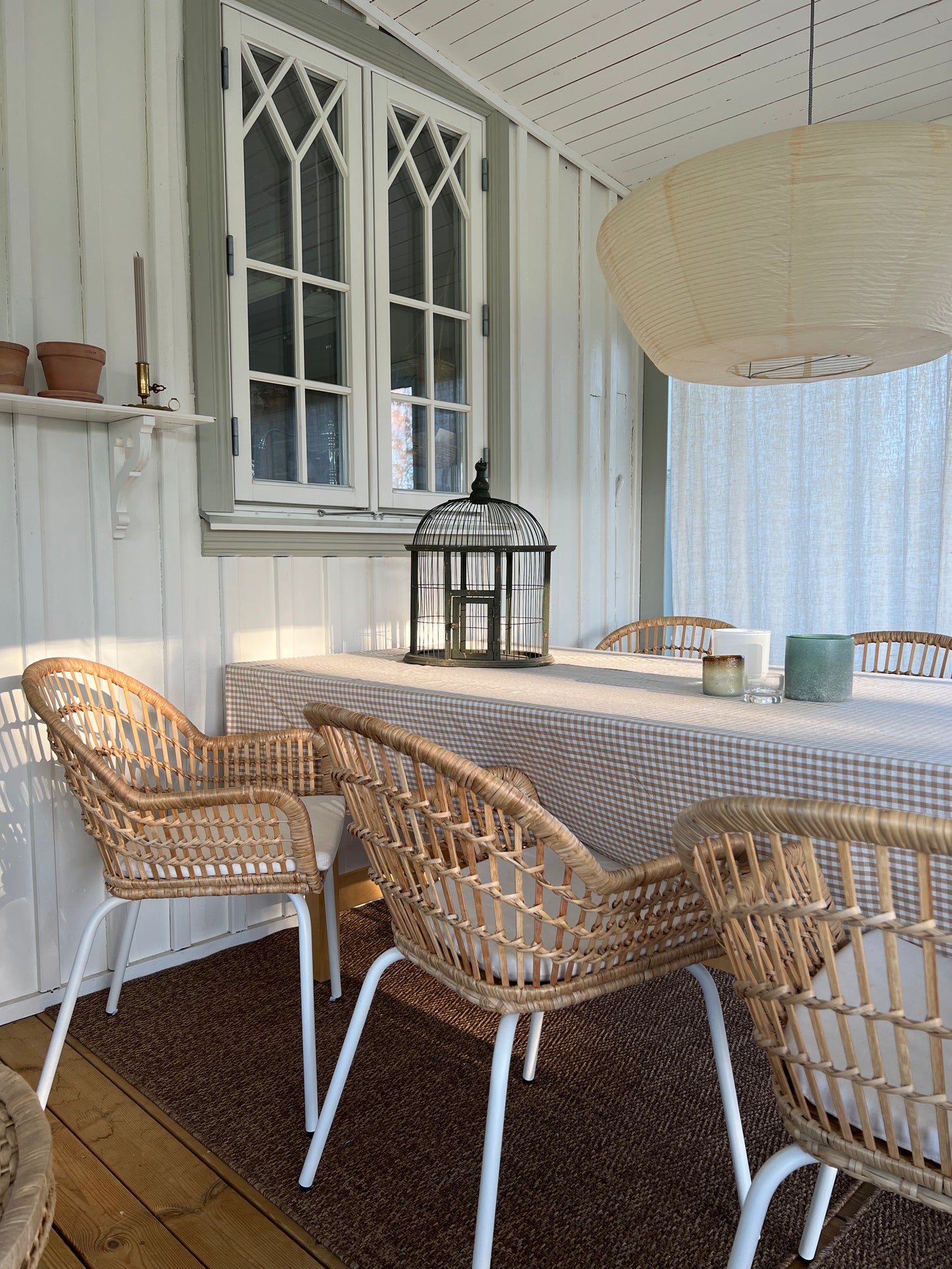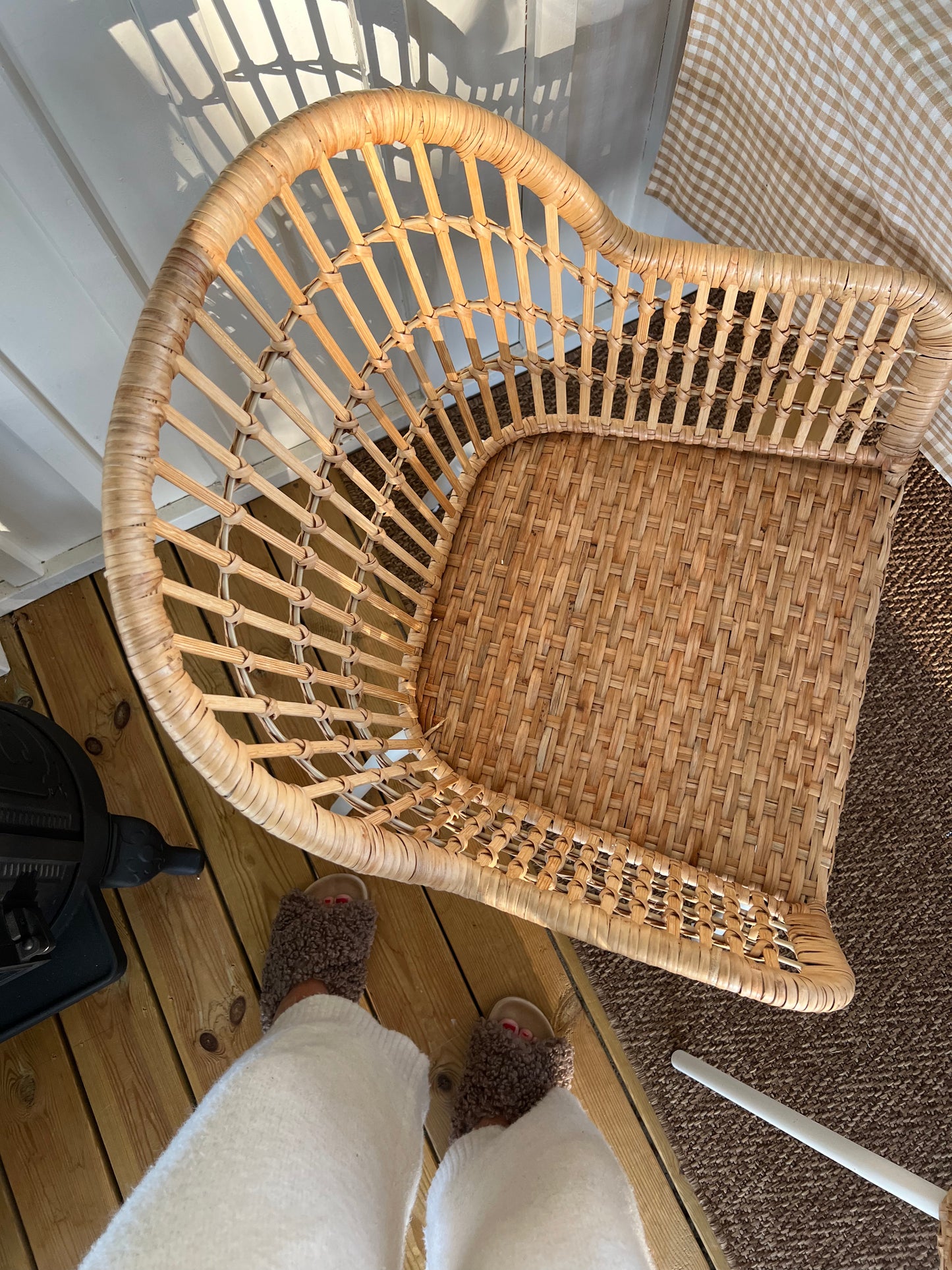 OM: 2st fina karmstolar i handvävd rotting och robust bambu med ben i vit stål. Finns totalt 6 st! I jättefint skick med dynor som ingår.