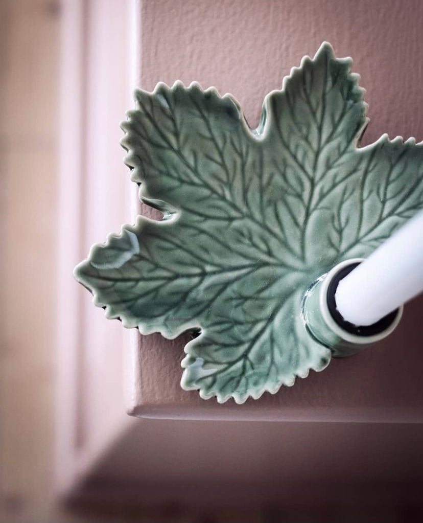 OM: Porslinsljusstake - grönt löv