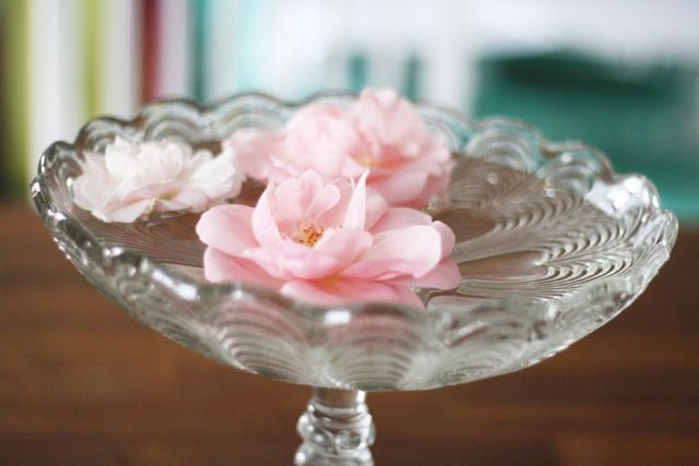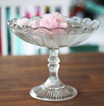 OM: Vacker glasskål på fot. Fin att servera gott i eller använda som blombad.