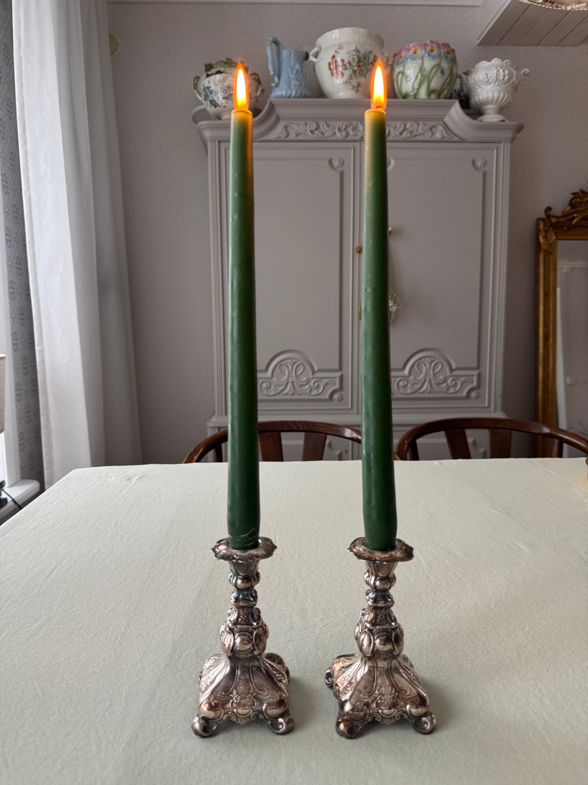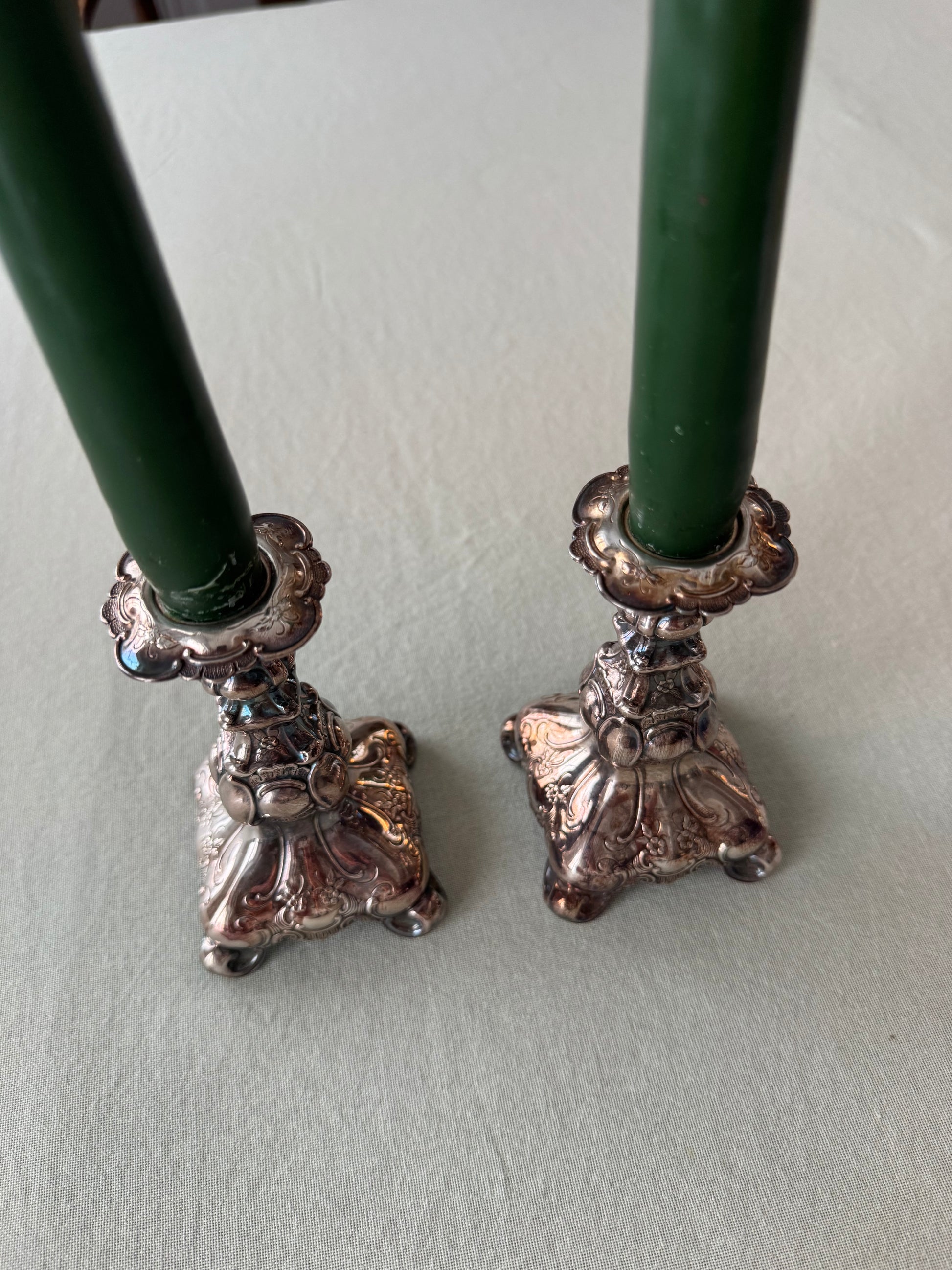 OM:Paret ljusstakar i nysilver