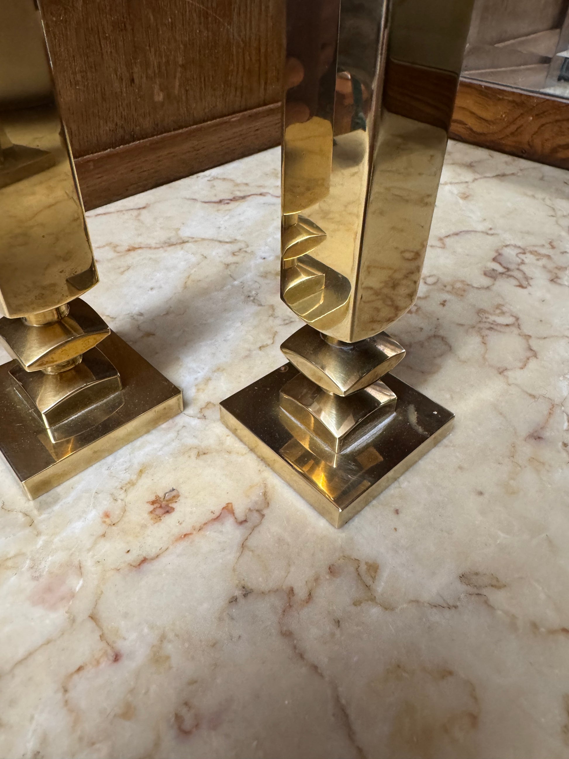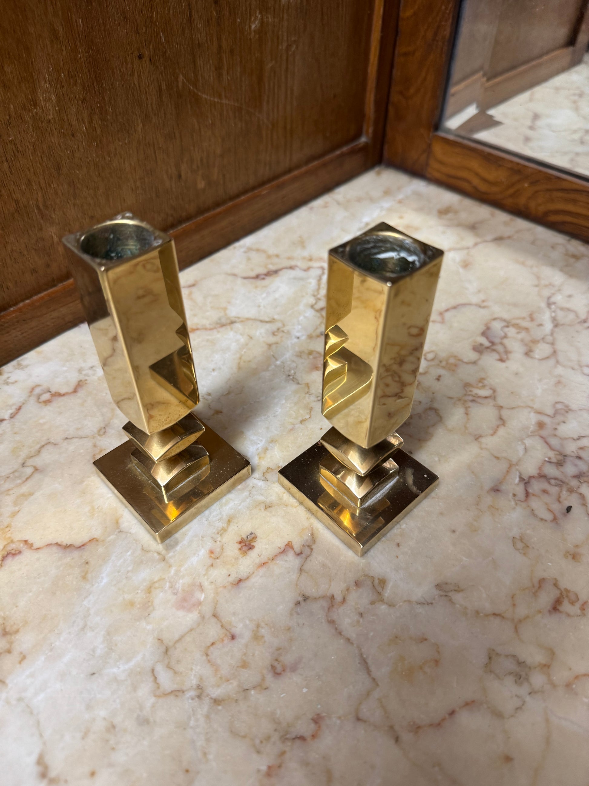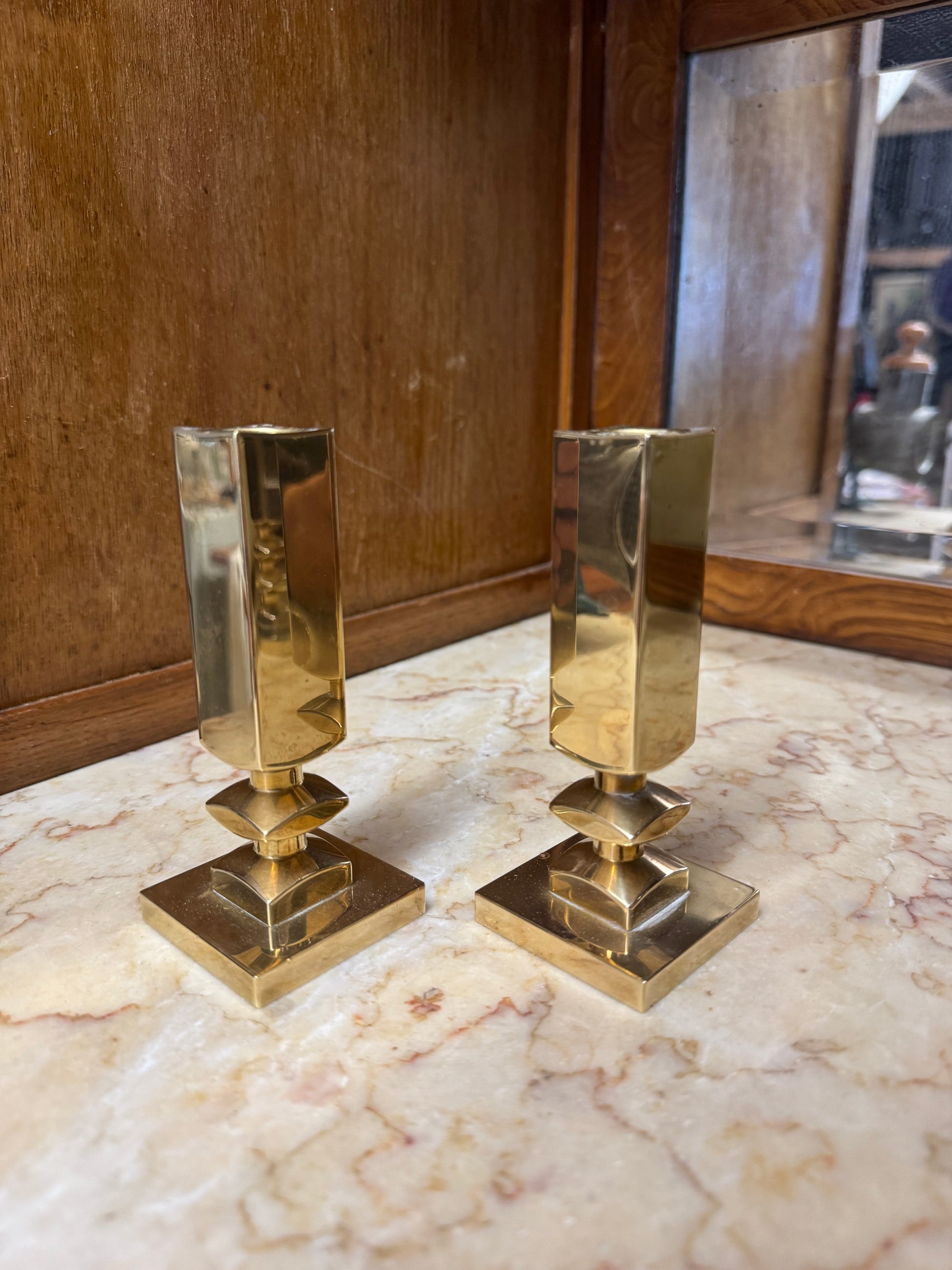 OM:Paret tunga ljusstakar, Vallonmässing. Putsade.