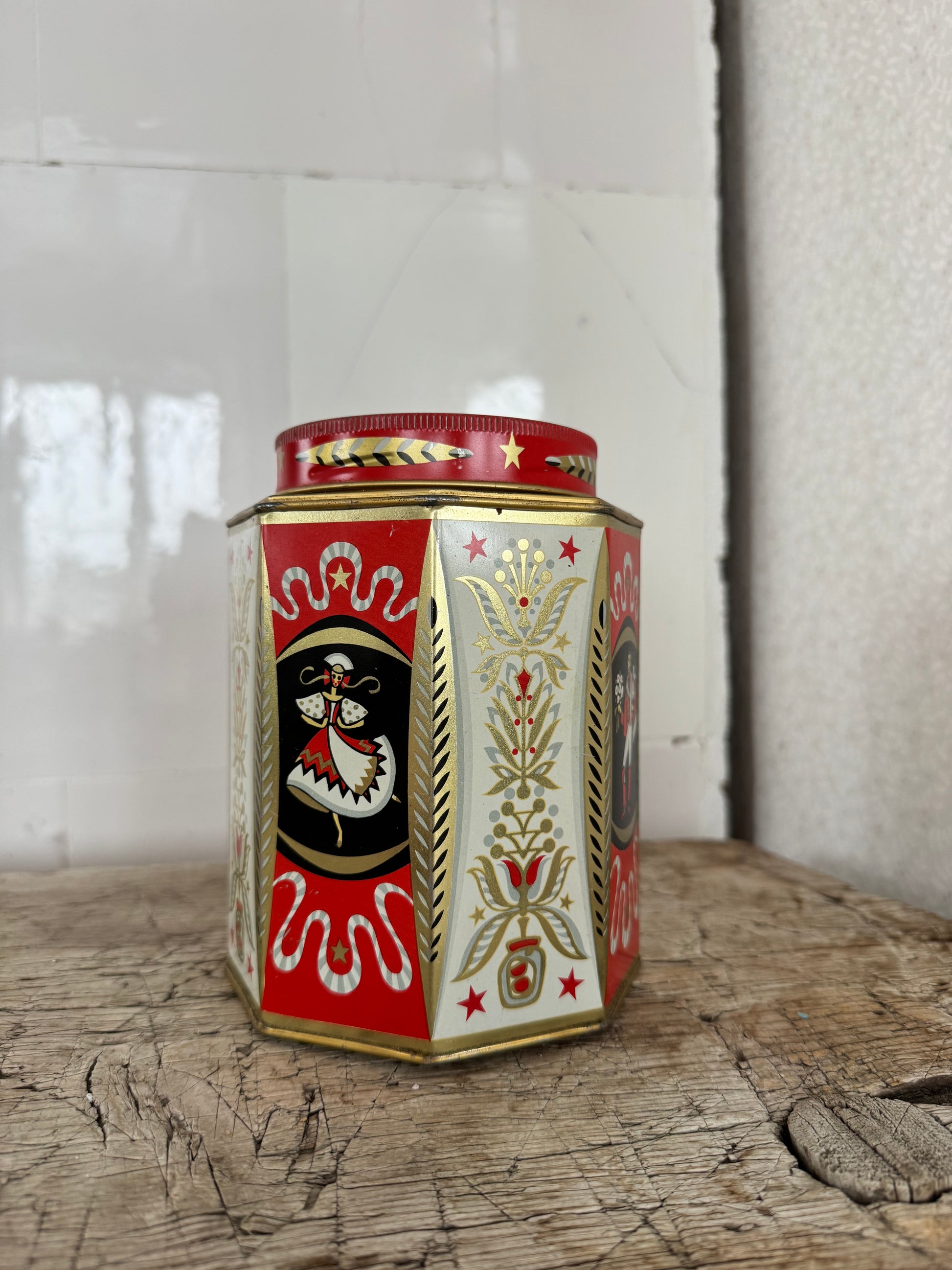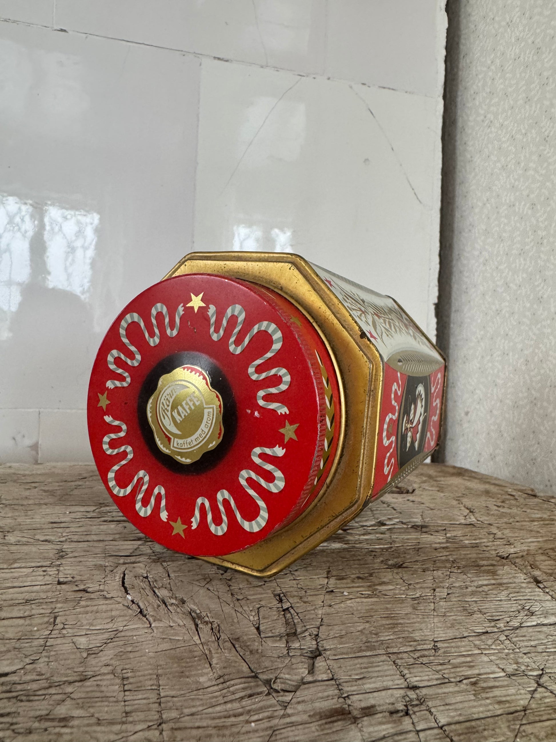 OM: Plåtburk kärnkaffe röd. Fräsch invändigt!