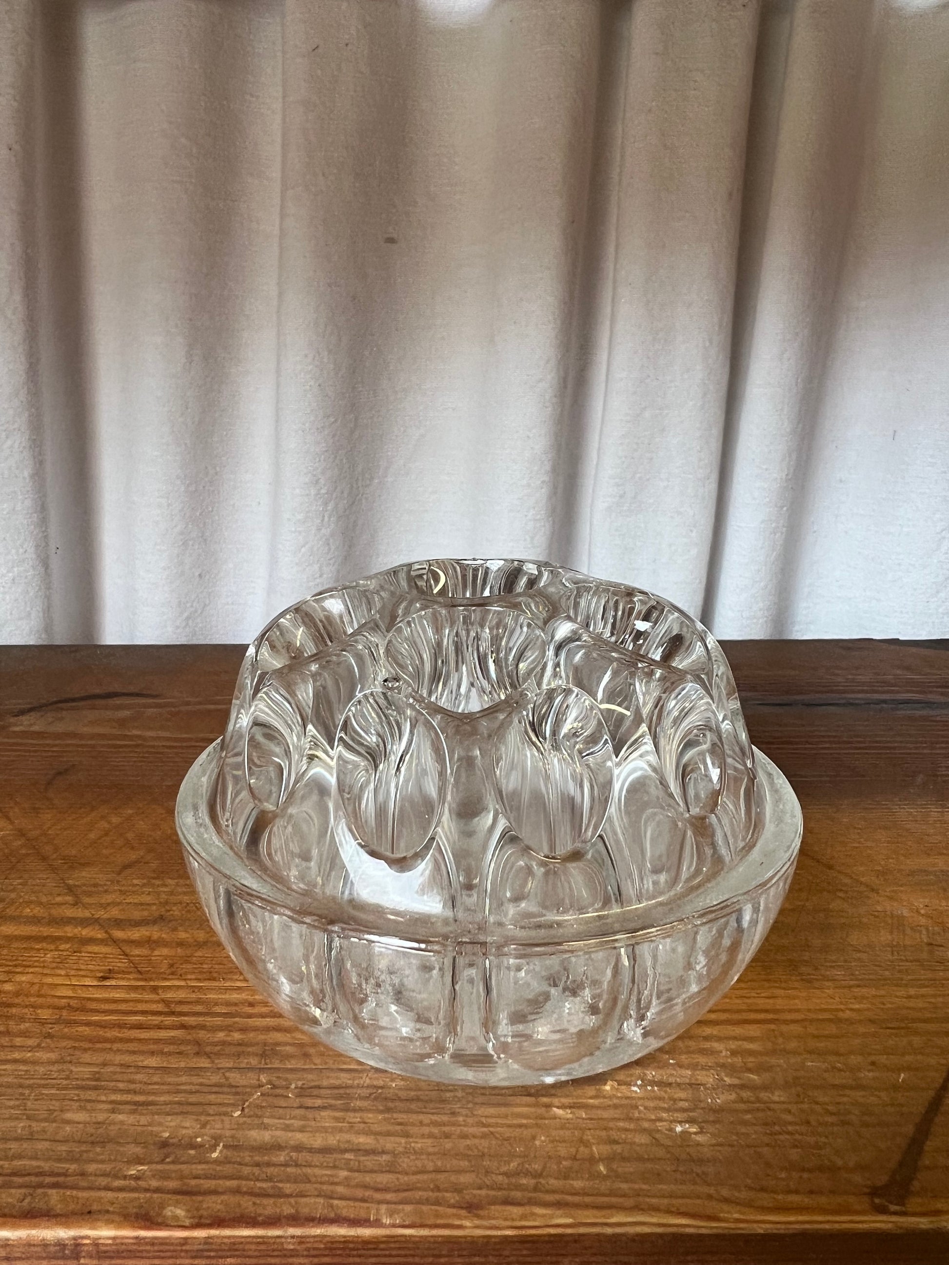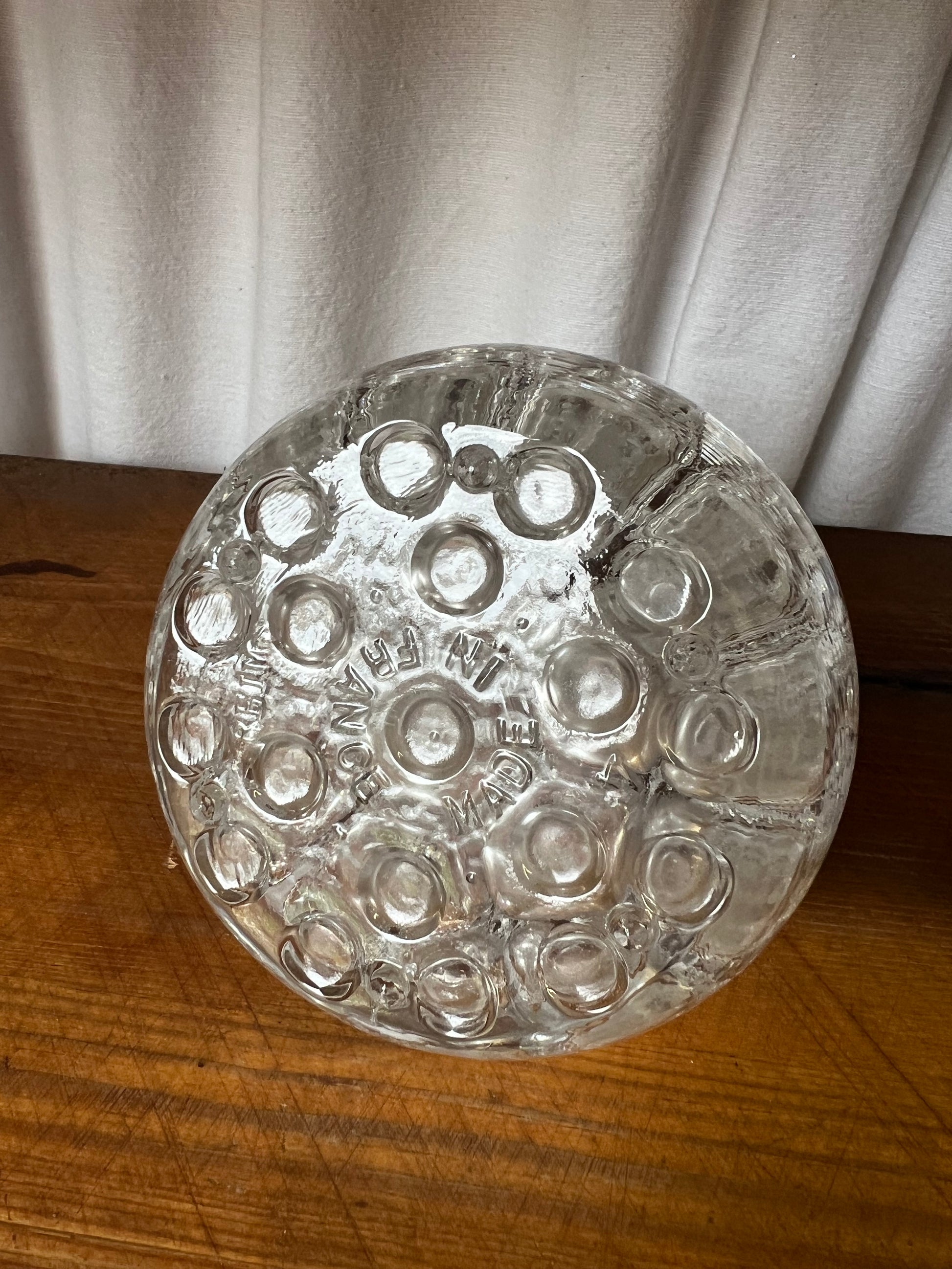 OM: Stor modell av blomsterfakir / snittblomshållare / oasis / Ikebana / Blomgroda, kär skatt har många namn. 19 hål, i klarglas. Märkt REIMS 3.0, made in FRANCE.