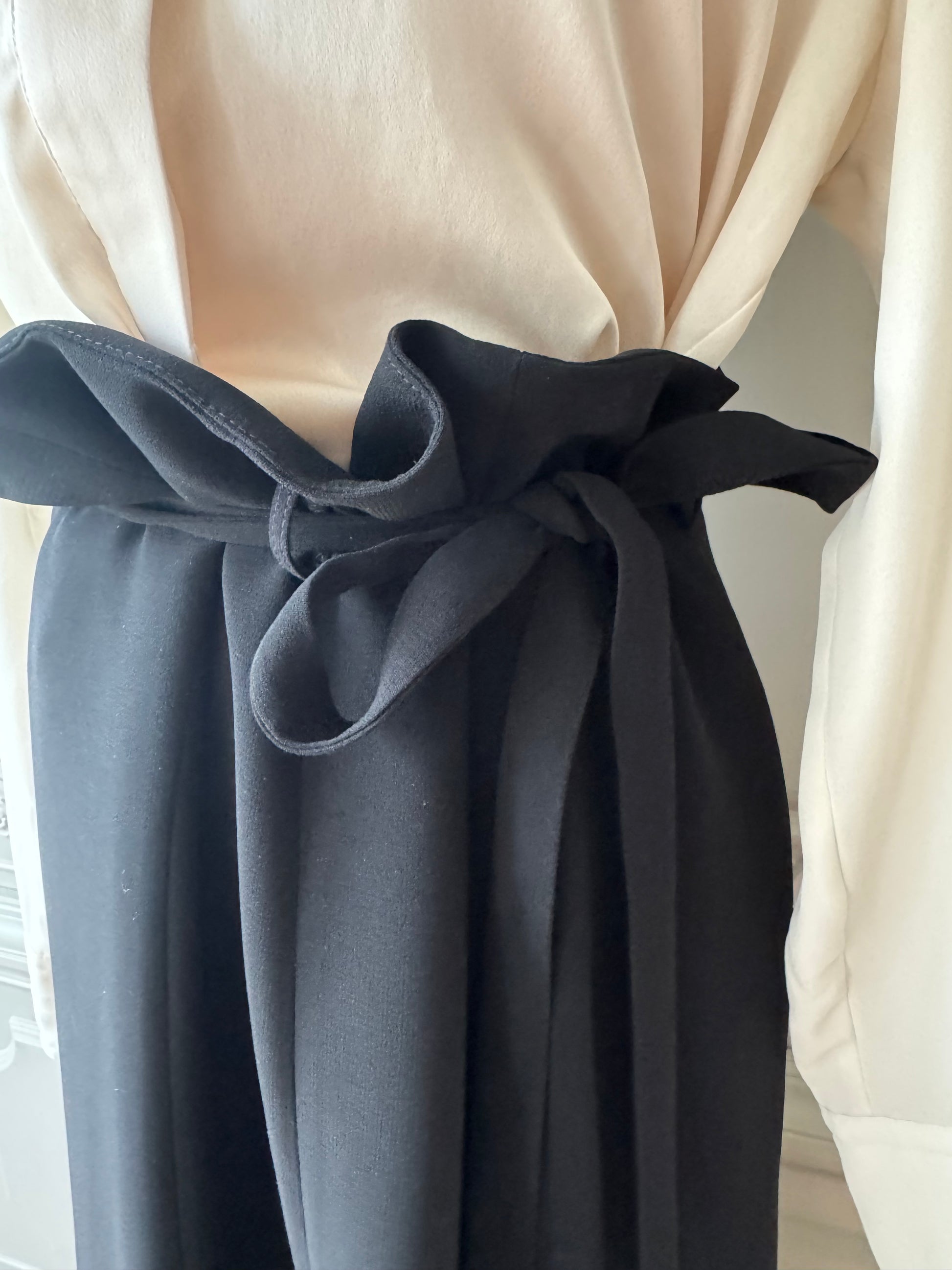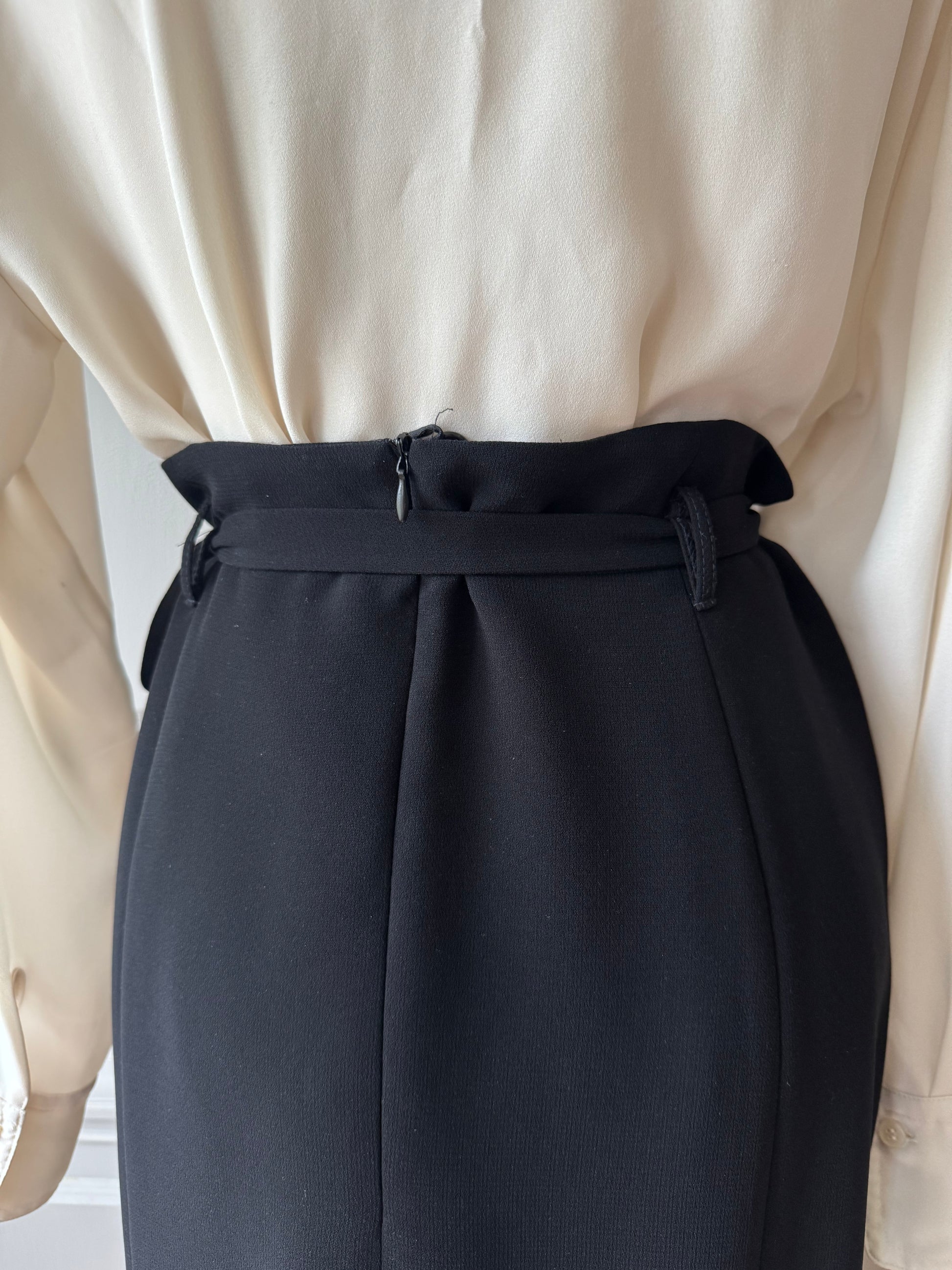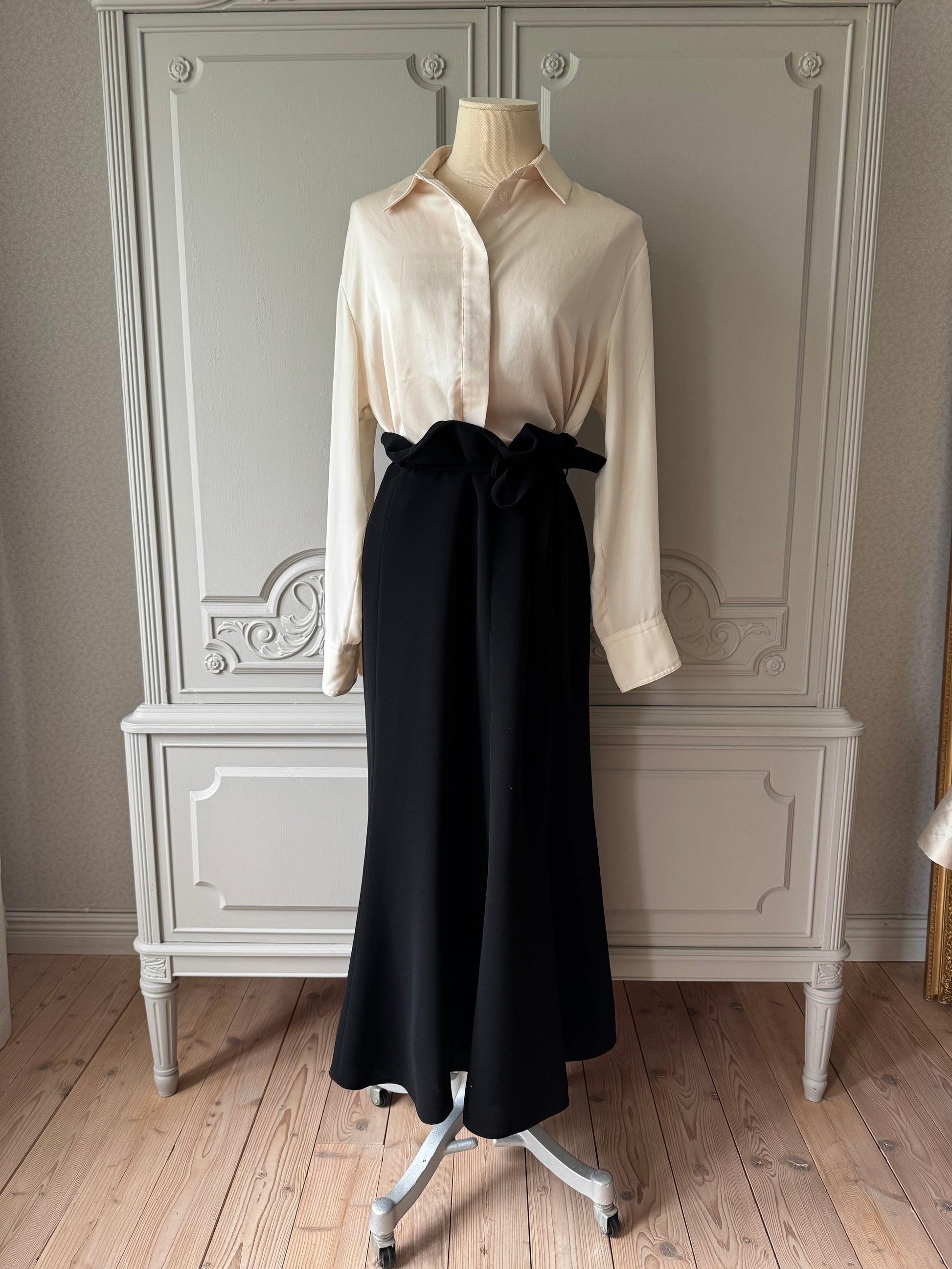OM:Svart mermaid långkjol. Är rynkad på dockan som är mindre, annars slät upptill.