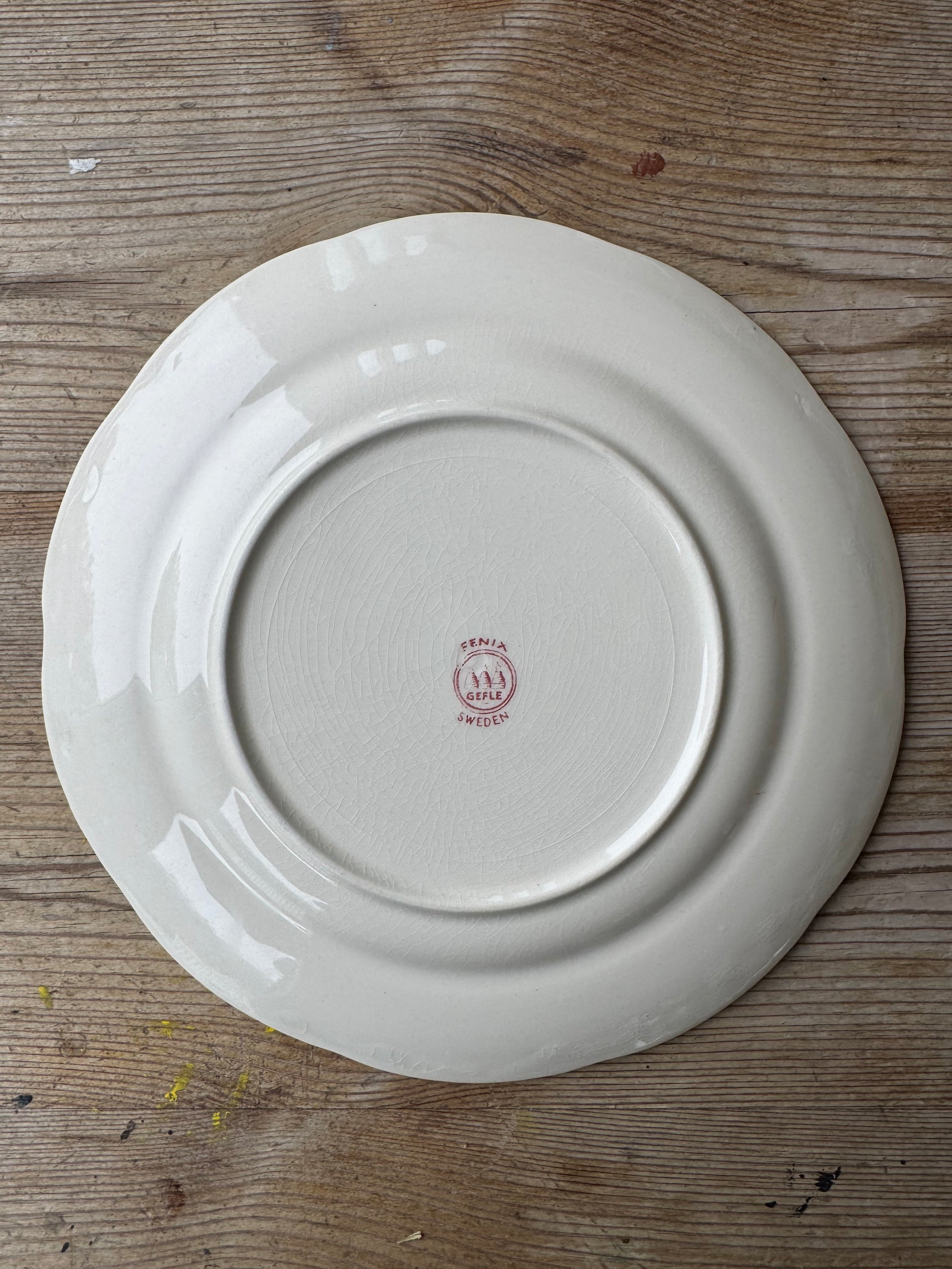 OM:Tallrik rött porslin Fenix Gefle Sweden