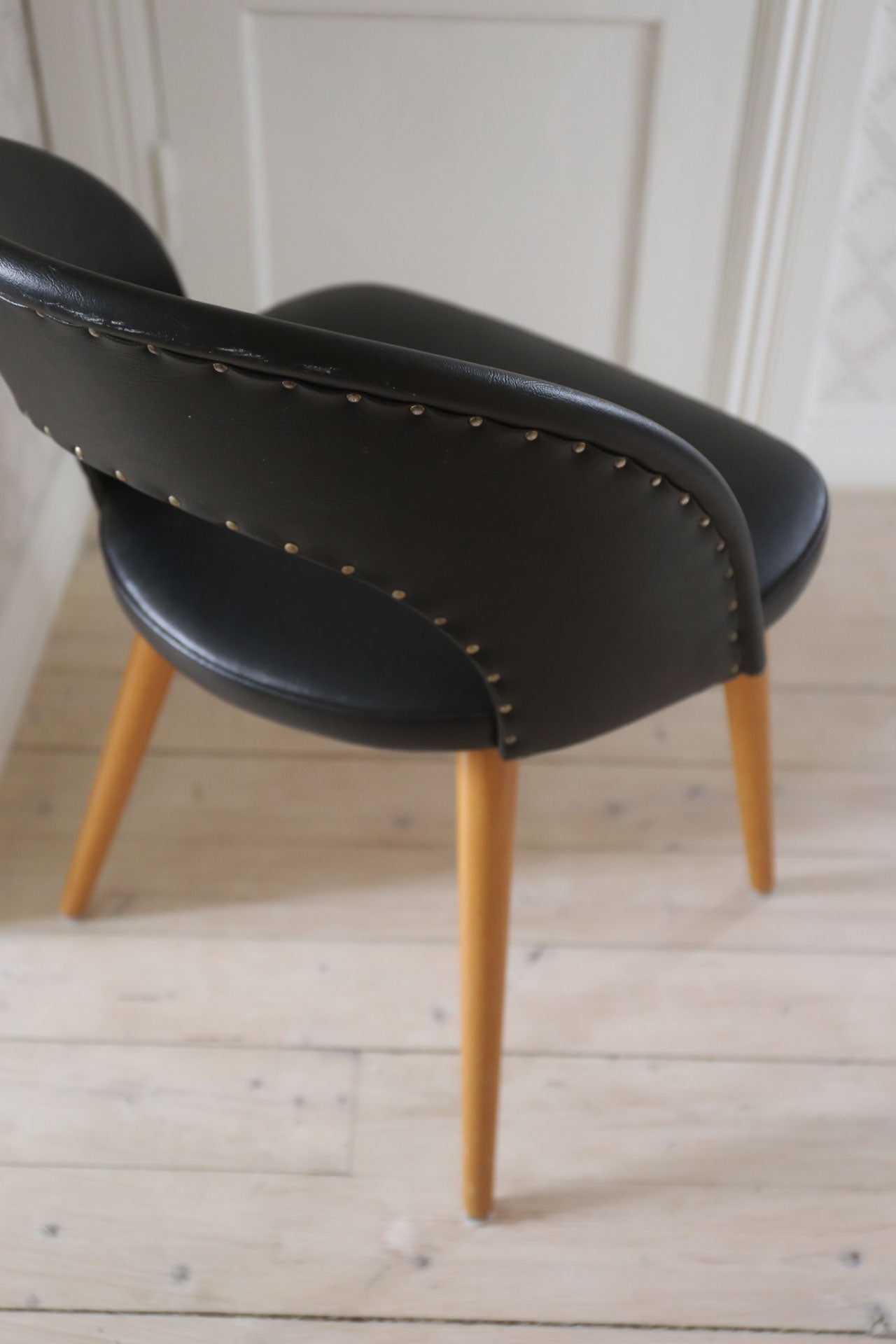 Svart stol i skinnimitation fäst med nitar 50-tal