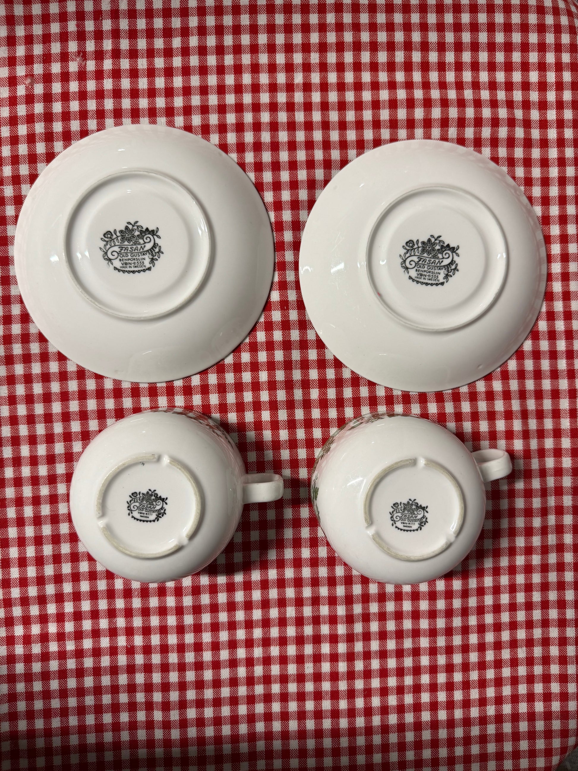OM:Två tekoppar med fat - FASAN Old Gustavsberg