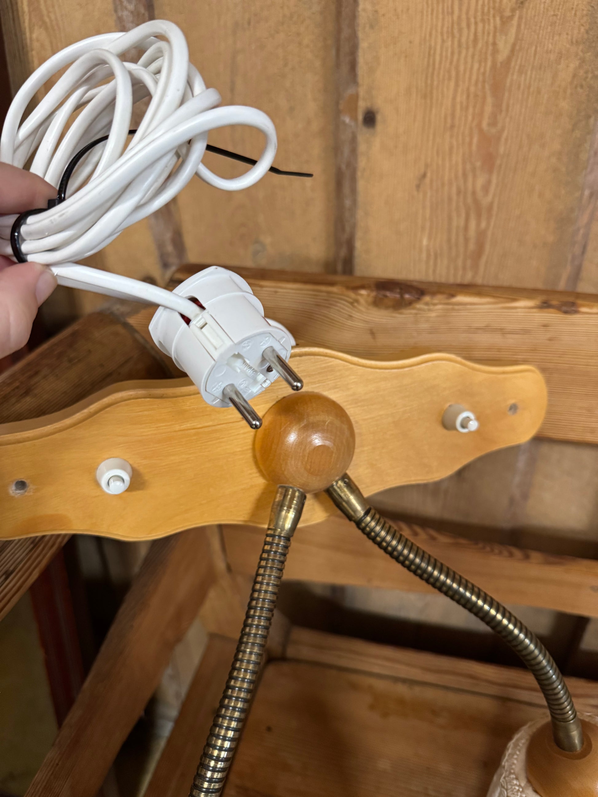 OM:Tvåarmad lampa med skärmar för upphängning på vägg.