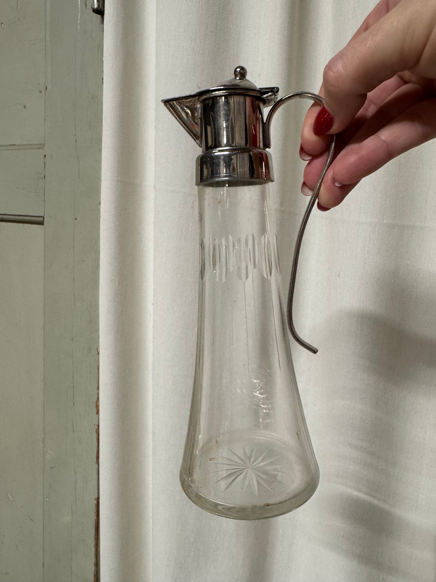 Vacker mindre kanna i glas med mönster