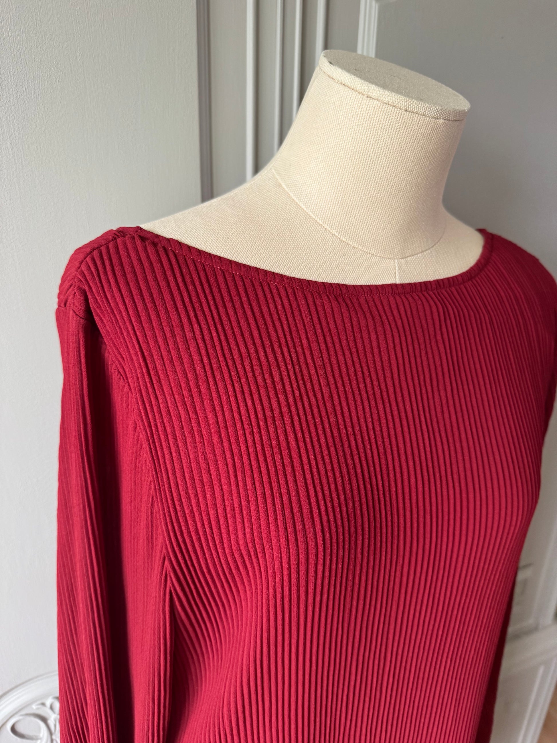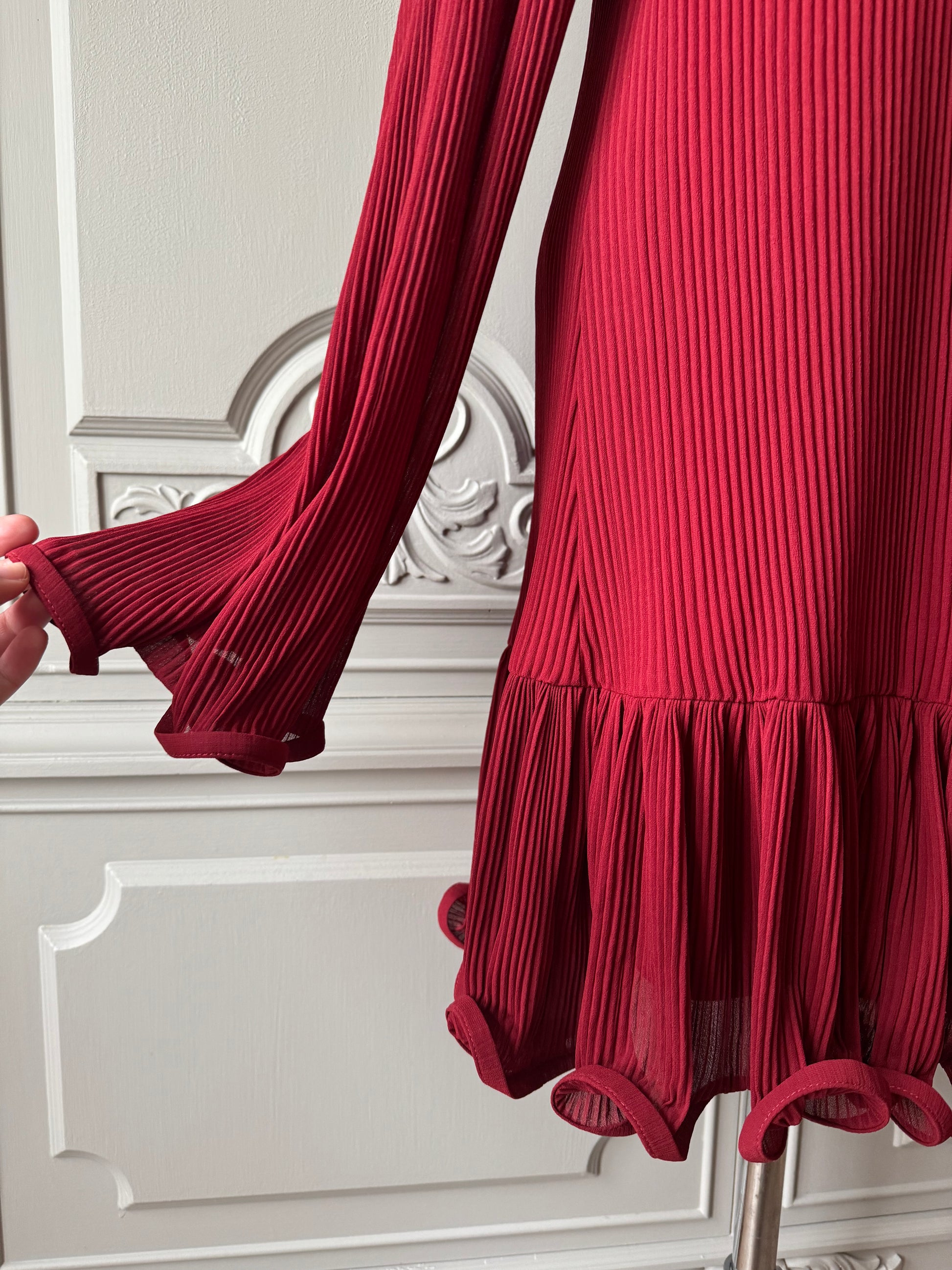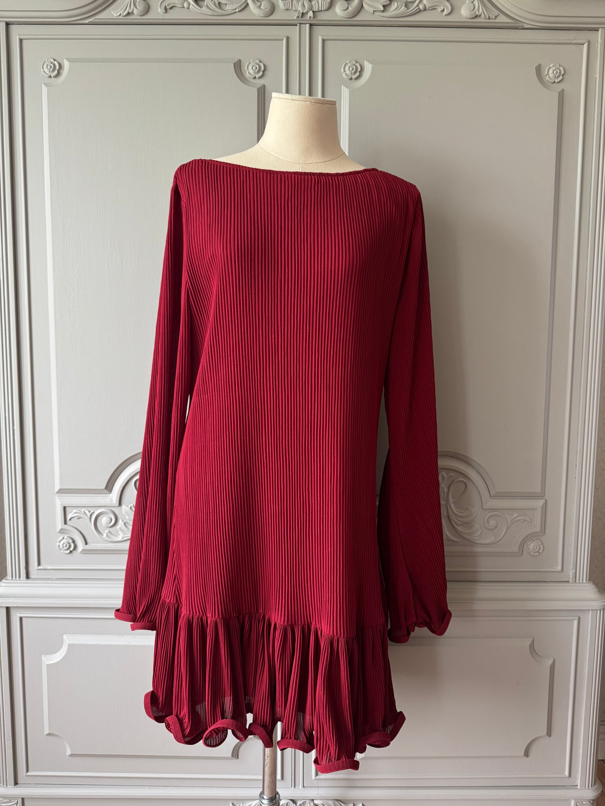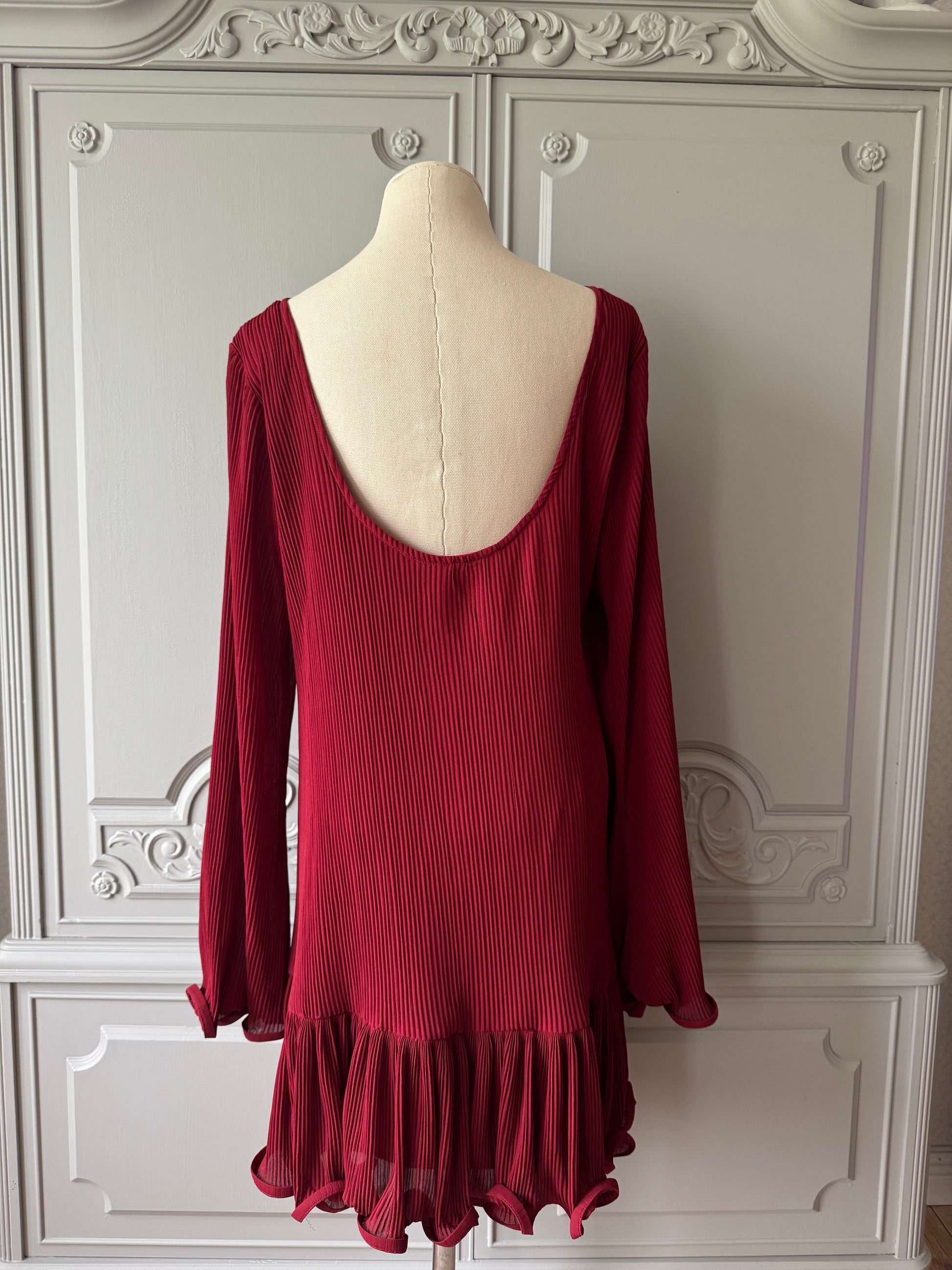 OM:Vinröd plisserad klänning NAKD. Volang nertill och urringad rygg.